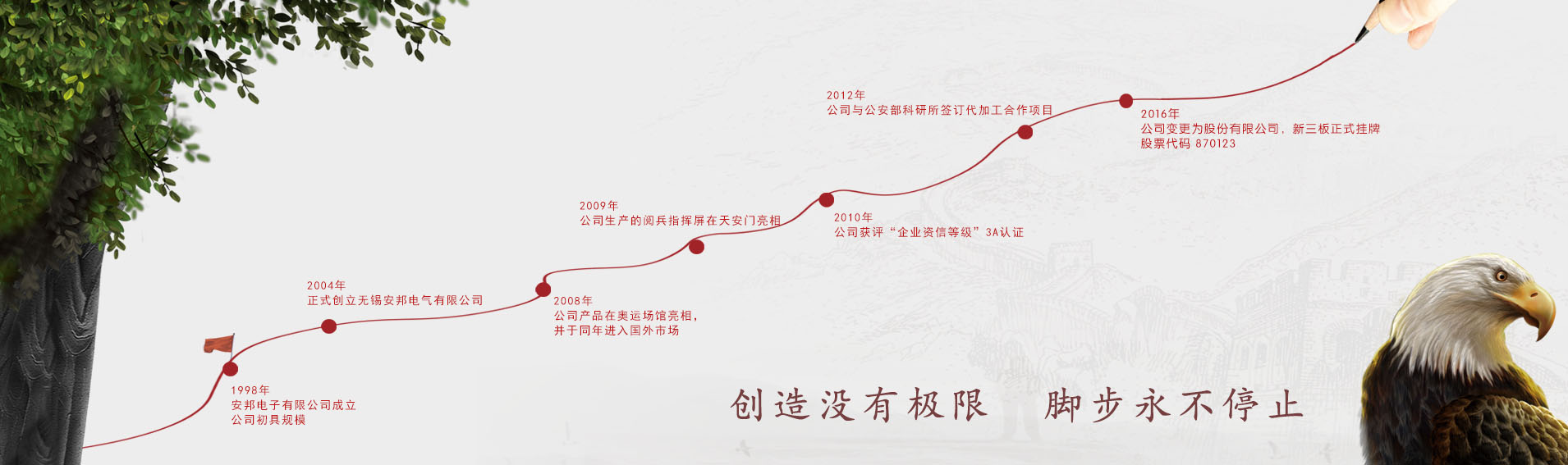 無錫安邦電氣股份有限公司系由無錫安邦電氣有限公司整體變更設立的的股份有限公司,前身為無錫市安邦電子有限公司,1998年創立于江蘇無錫,是一家專業從事LED應用產品的研發、生產、營銷服務的制造企業,其主... MORE