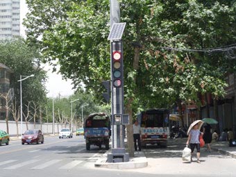 2011年6月6日我公司工作人員赴西安雁南三路安裝調試JXG太陽能組合式交通信號燈,JXG太陽能組合式交通信號燈的光伏(太陽能電池)發電系統具有安全可靠、無噪聲、無污染、制約少、故障率低、不需外界交流電源、維護簡便等優點。JXG太陽能組合式交通信號燈系統采用太陽能電池板和蓄電池供電,無需外部能源(交流AC220V)。系統帶有自動調光功能,在陰天和夜間進行減光,以節約耗電量,延長工作時間。